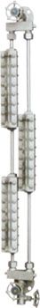 按其本體結(jié)構(gòu)雙面玻璃及單面玻璃分為透視式 T 型及反射式 TR 型,工作壓力為 1.6 、 2.5 、 4.0 、 6.4 、 10 、 12 、 16MPa 多種,根據(jù)中心距長短可分為 1 ~ 5 節(jié),超過 5 節(jié)即為無盲區(qū)雙排并列互相交錯的千鳥型。